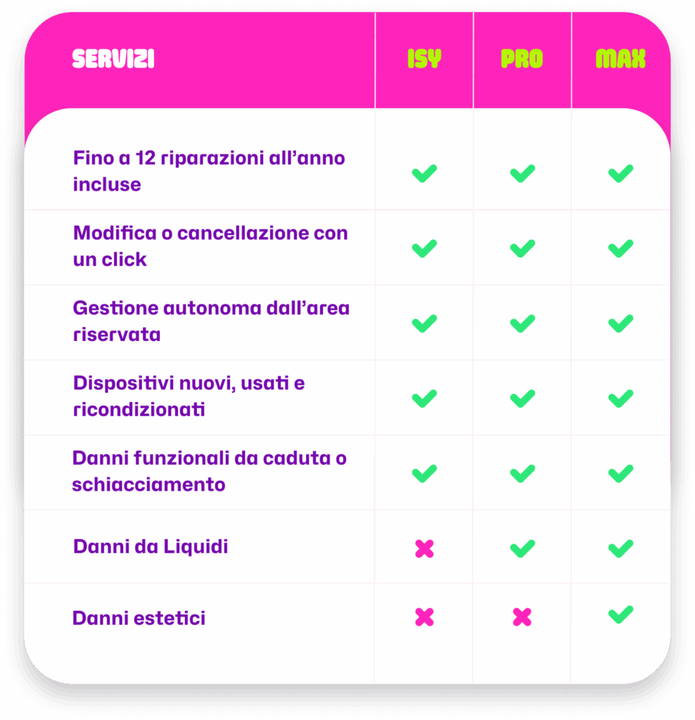 Facile, li copriamo tutti! Scegli il livello di copertura ISY, PRO o MAX, completa l’attivazione e proteggi i tuoi device, con uno sconto fino al 20%.
